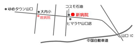 現病院から東に700m、コスモ石油とセブンイレブンの間になります。